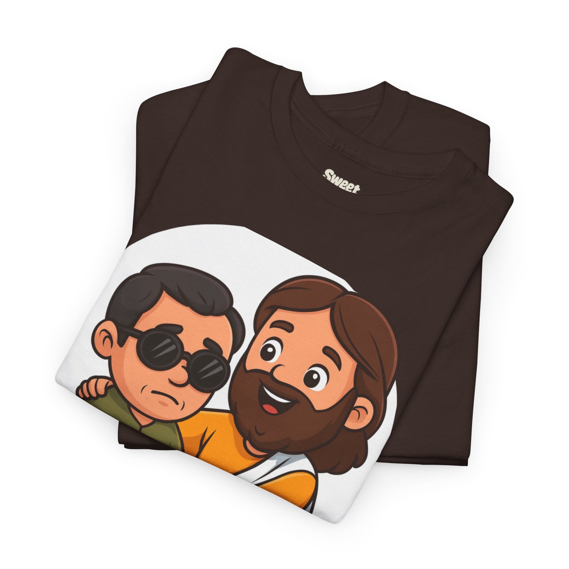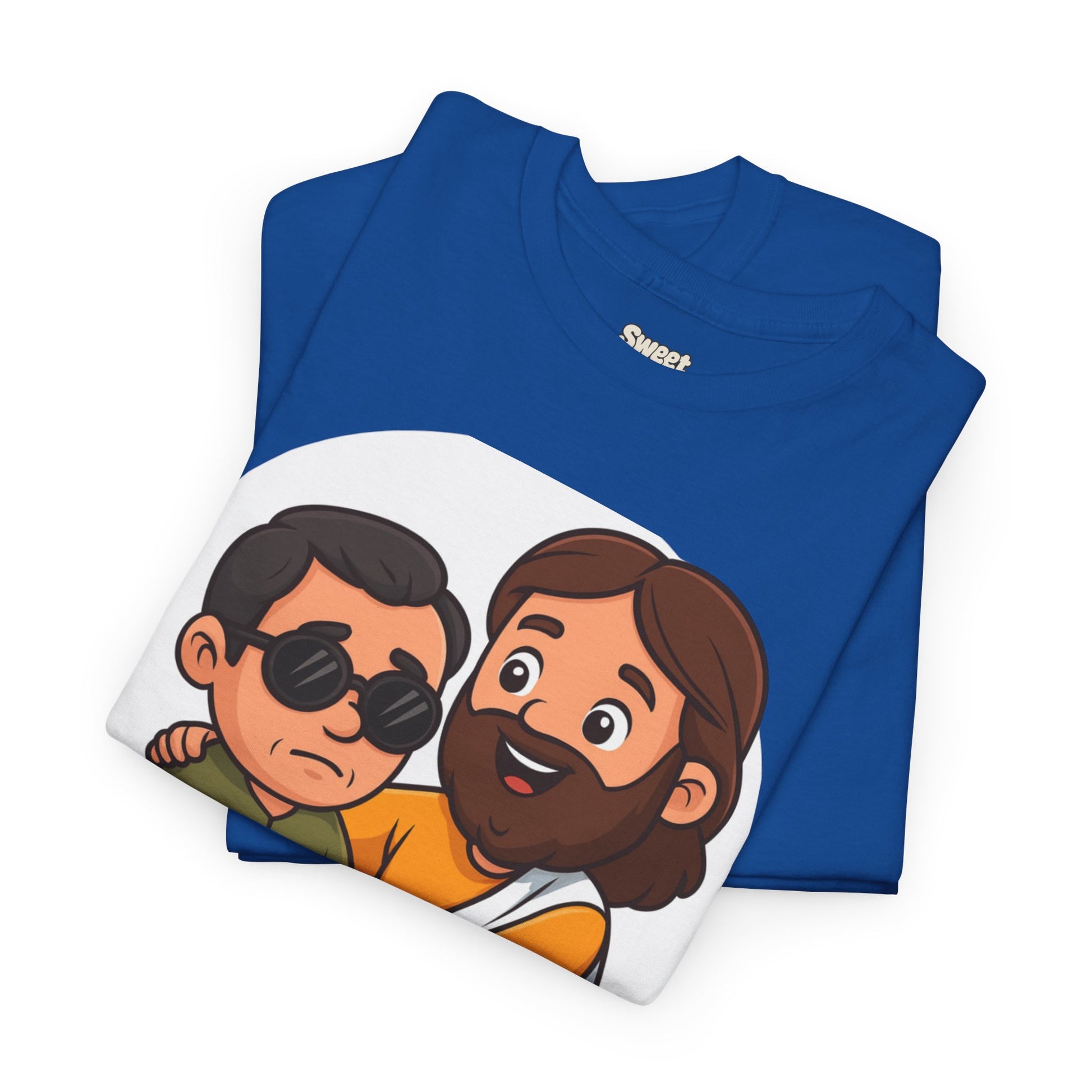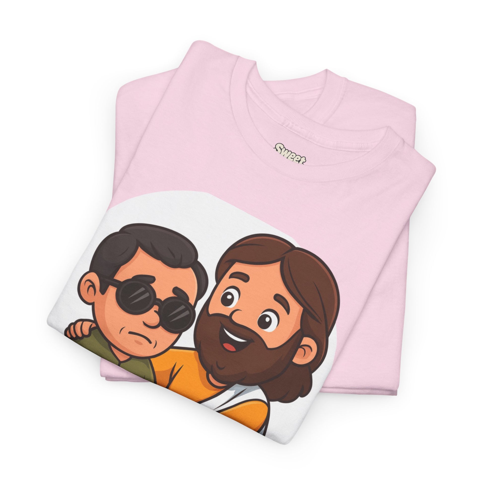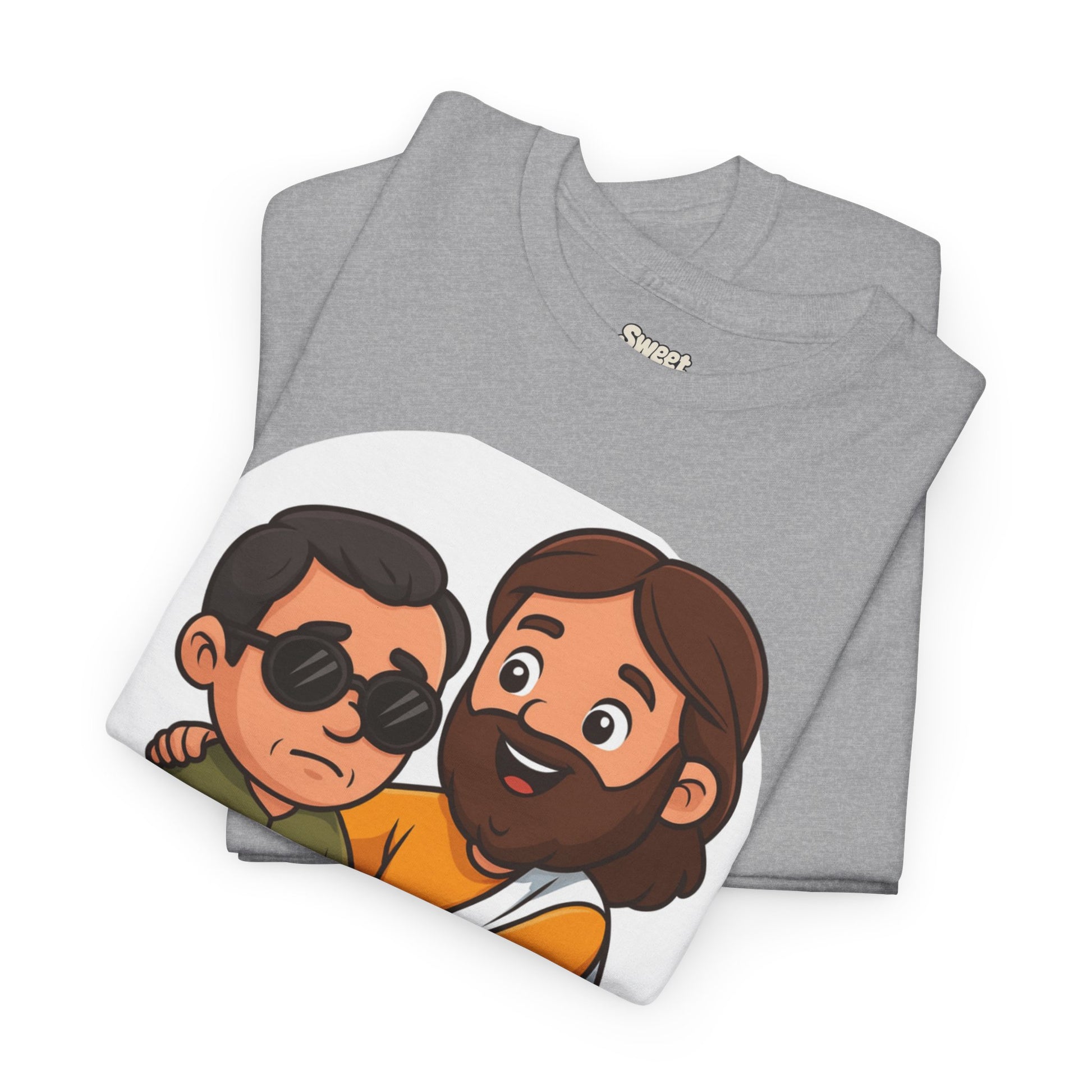 Share a story without saying a word. This Sweet Jesus tee features our signature character in a tender moment — gently guiding and healing a blind man. It’s a warm, lighthearted take on one of the most powerful miracles in Scripture, brought to life in the playful Sweet Jesus style.
